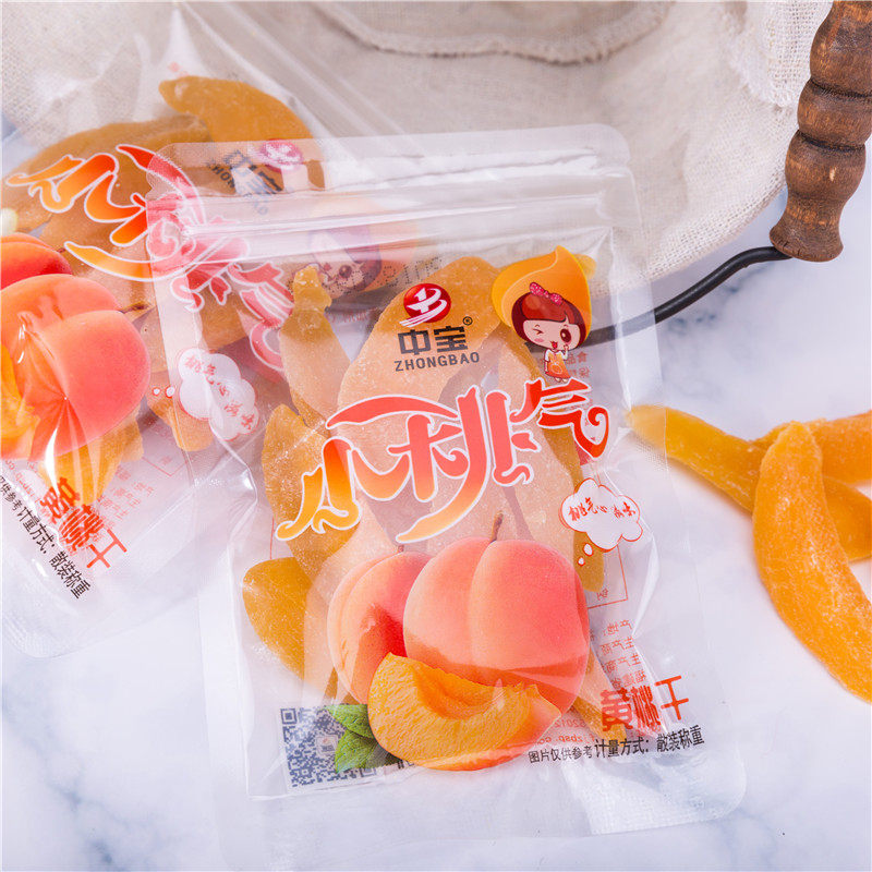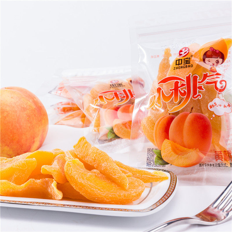 Zhongbao Taimang yellow peach dried fruit Dried fruit Preserved peach meat Preserved peach flesh Transparent package specialty snack candied fruit