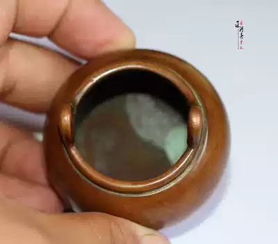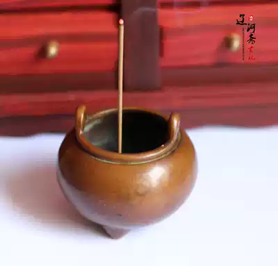 Small Xuande furnace Binaural milk furnace Mini pocket antique incense burner line incense burner Copper Xuande furnace Tea ceremony for Buddha ornaments