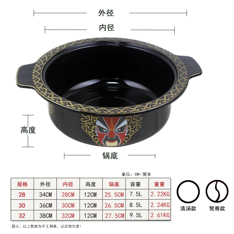 28cm clear soup with 30cm clear soup with 32cm clear soup and 28cm mandarin duck with 30cm 32cm mandarin duck