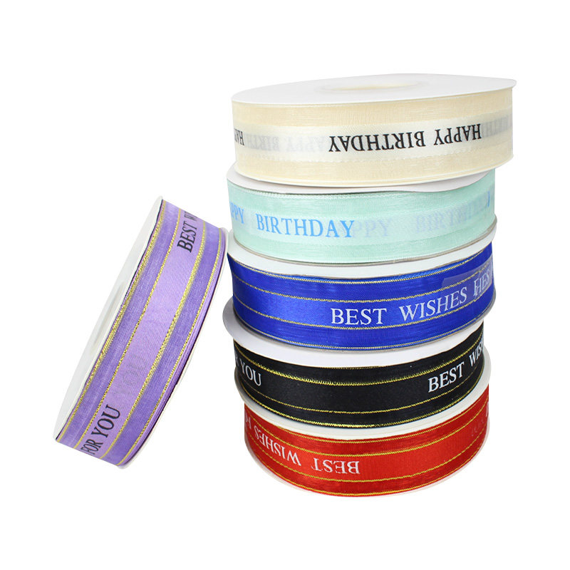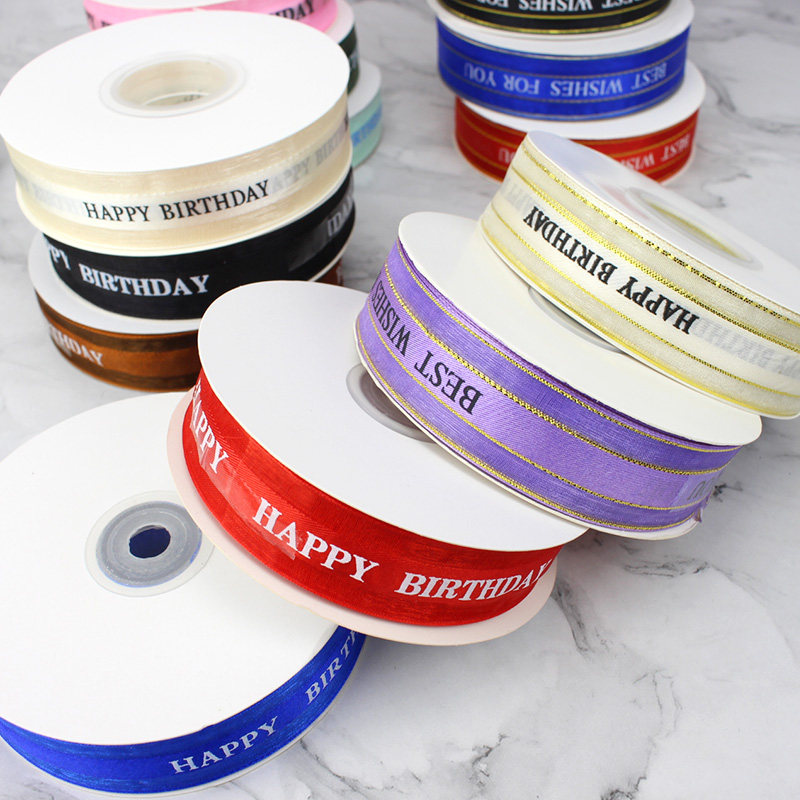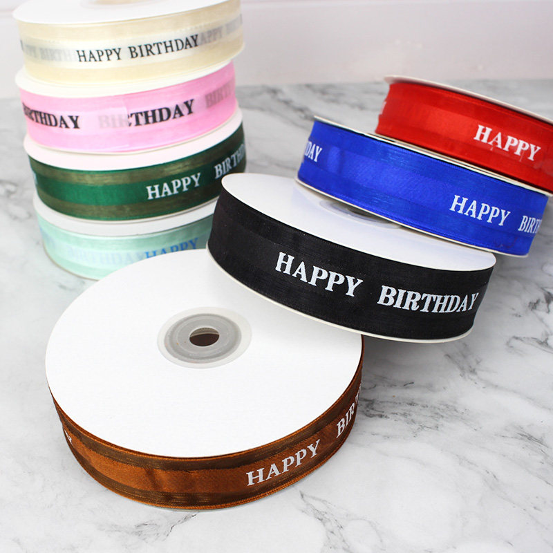 Lace Happy Birthday English Letters Color with baking cake Barbie Decorative Nylon Ribbon with satin veil with 45 m