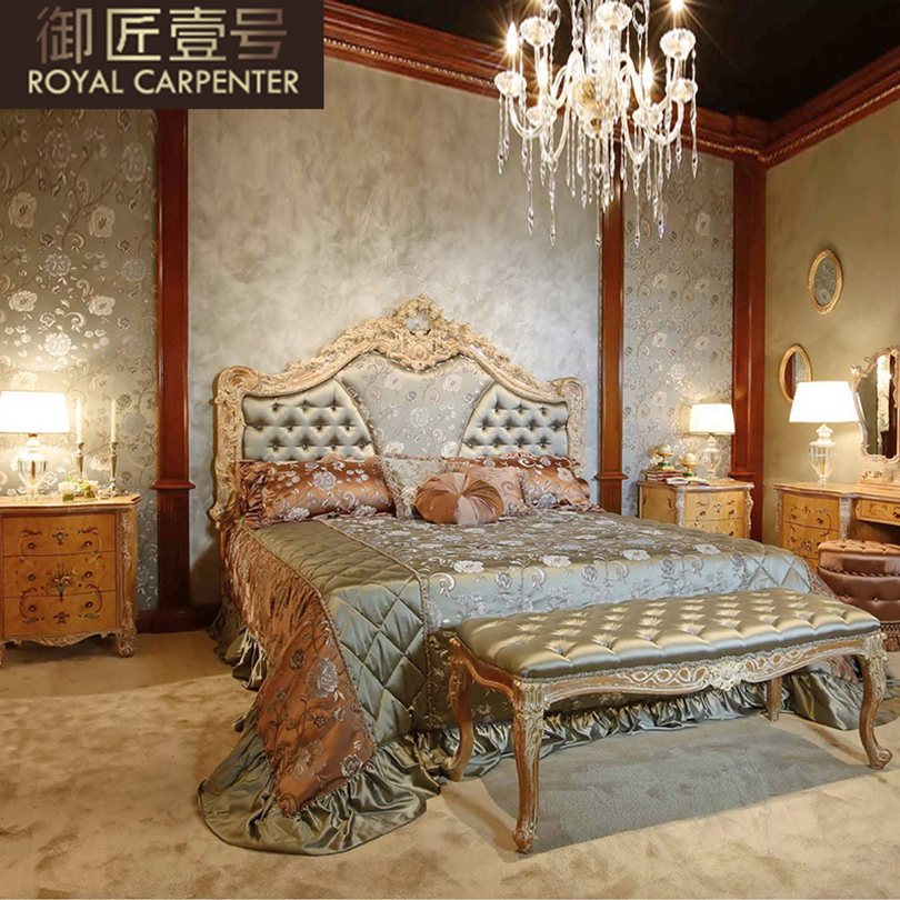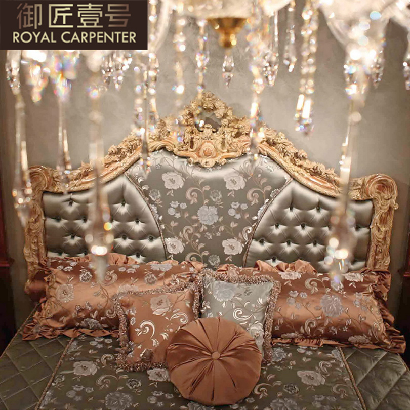 Luxurious European-style Villa Bedroom Home Innate Solid Wood Handcarved Floral Fabric 1 8 m Main Bed Double Bed Customised Bed