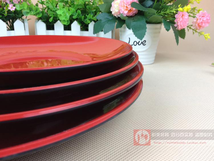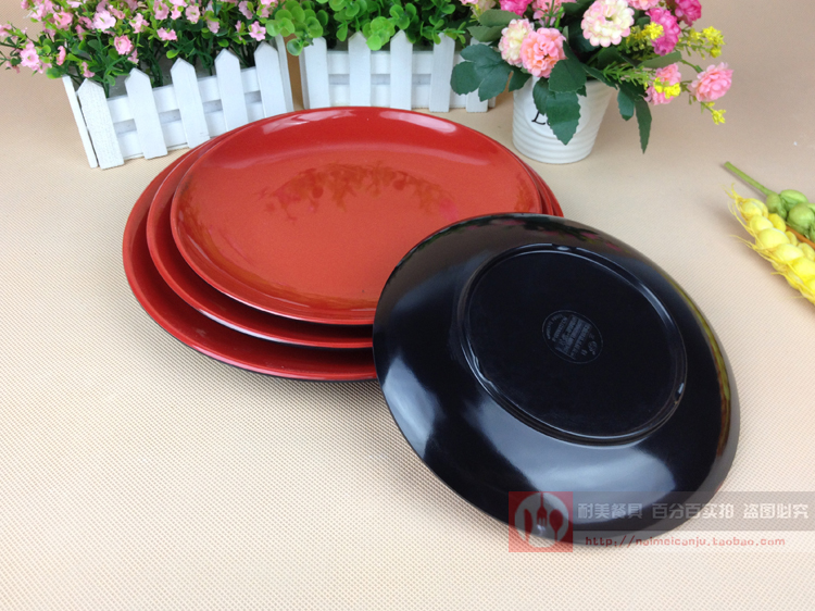 A5 material black red thickened imitation porcelain Western food round disc Meat-resistant plastic self-service hotpot cutlery plate Melamine Dinner Plate