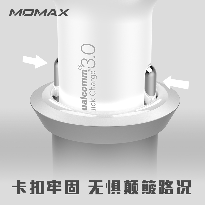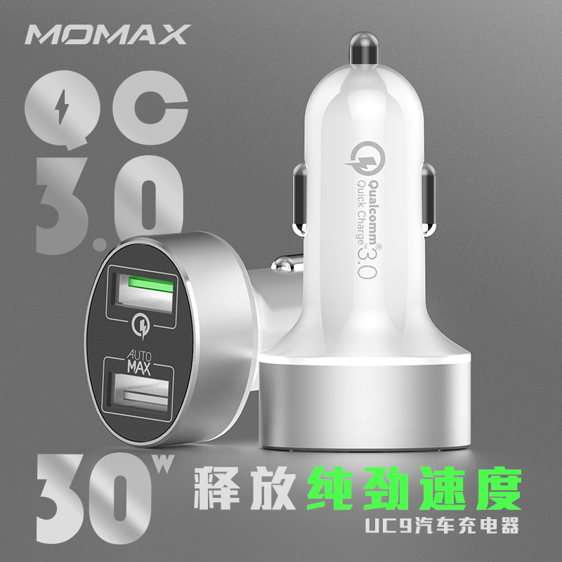Momax Momis car charger fast charging version QC3 0 mobile phone dual USB one drag two car cigarette lighter