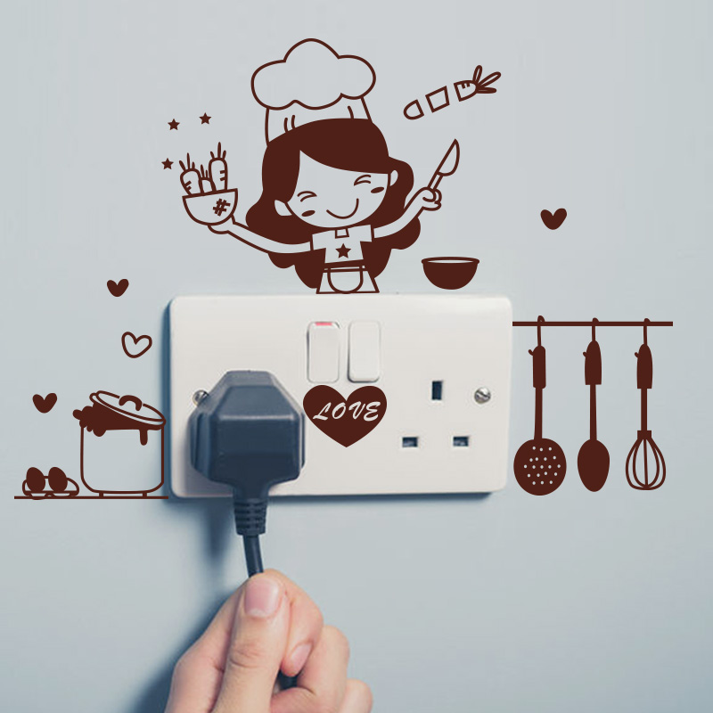 Wall Paper Stickup Kitchen Dining Room Living Room Bedroom Cartoon Day Wind Korea Wind Creativity Switch To Socket Wall Decorations