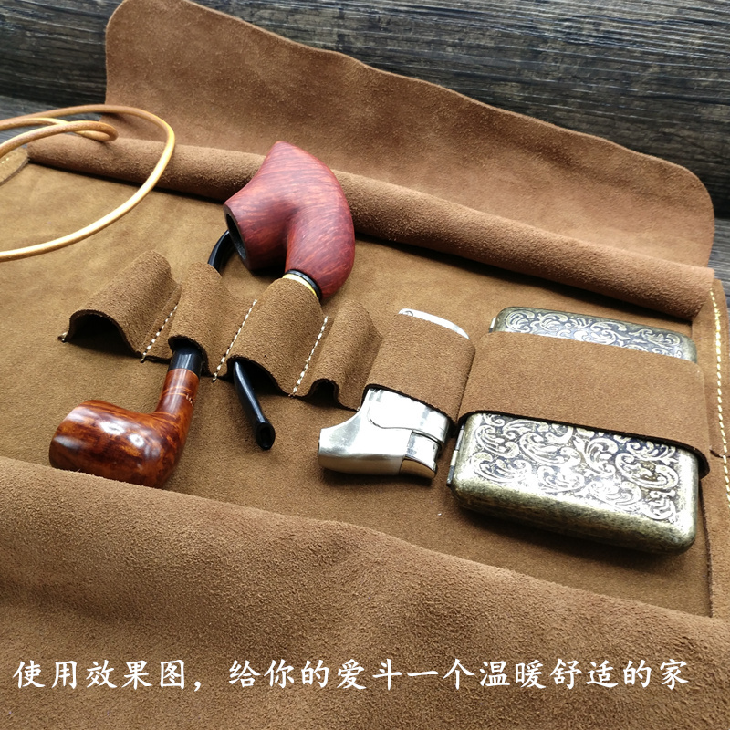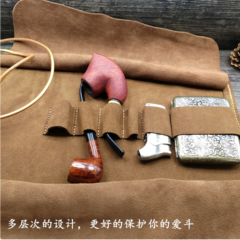 Multi-bit large-capacity handmade genuine leather pipe bag head layer cowhide pipe bag hand-rolled cigarette bag retro cigarette case bag