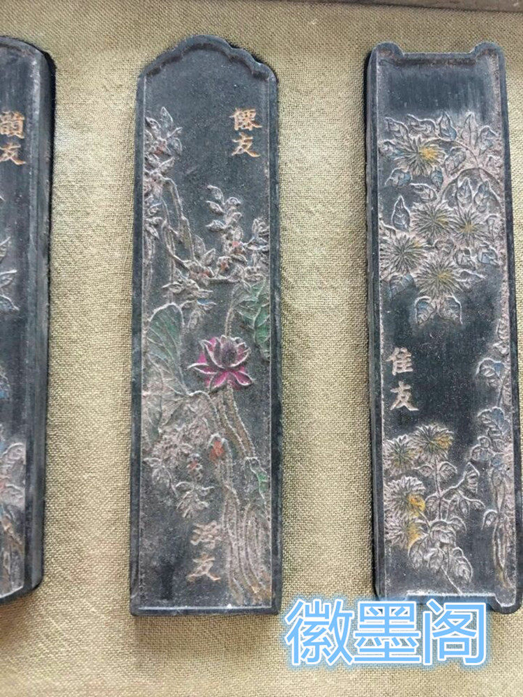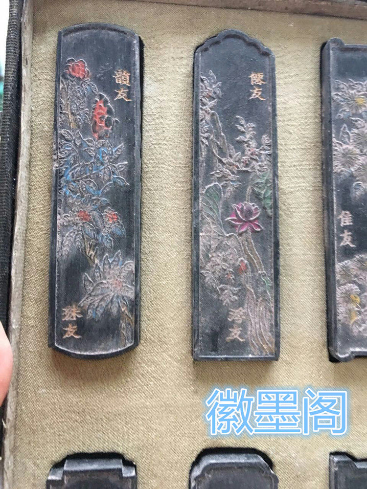Famous flower ten friends set of ink Hui Ink Wenfang four treasures beautifully preserved set of old Hui ink ink block ink bar ink ingot