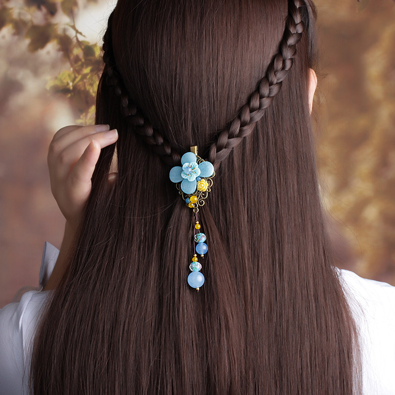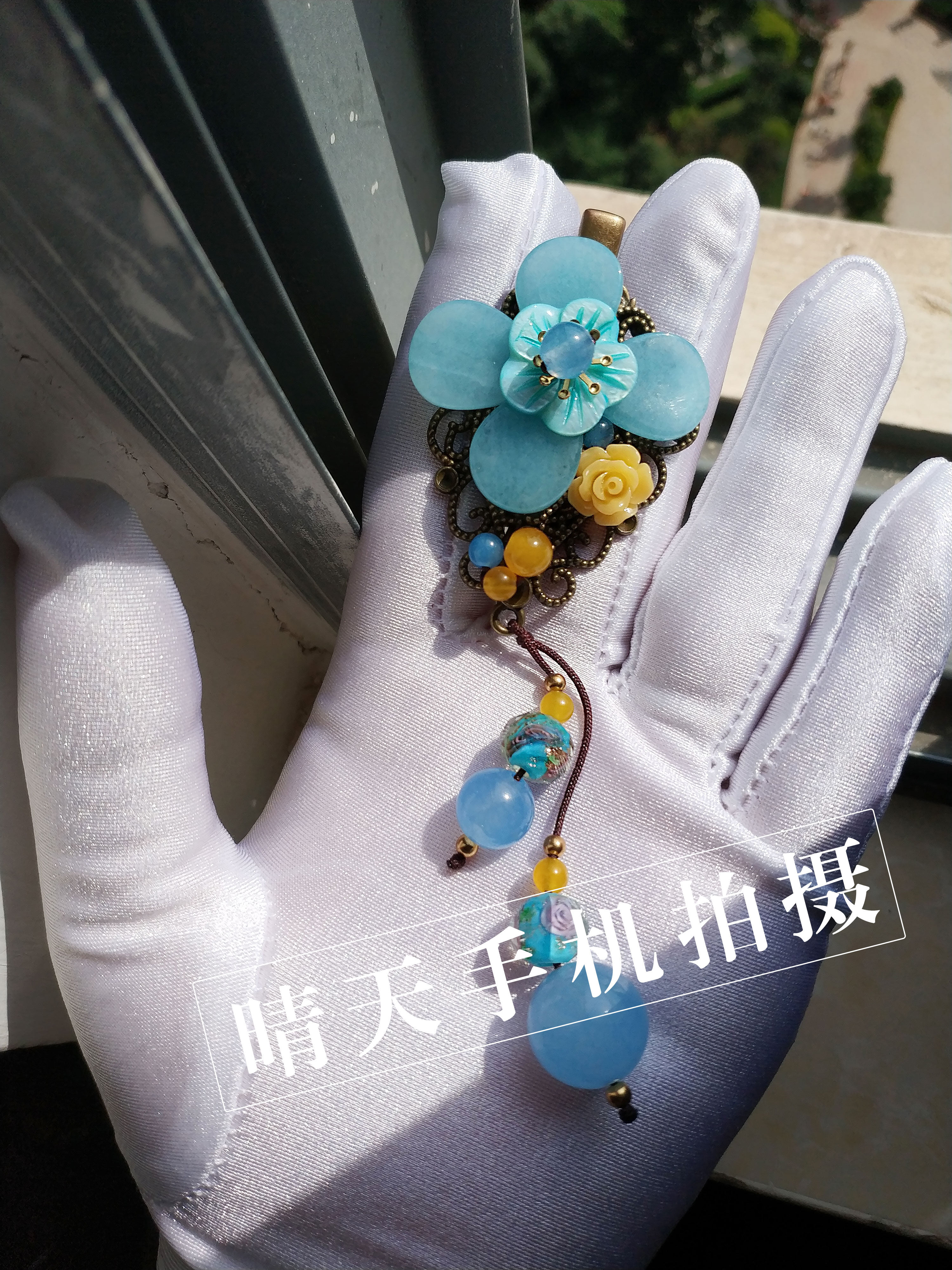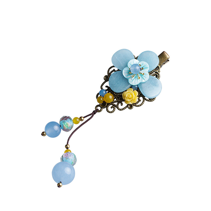 National Wind Clip Headwear half a hair clip Hair Clip Blue Jade Medullary Flowers Ancient Wind Hair Accessories Adults Hairpin Temperament Brief