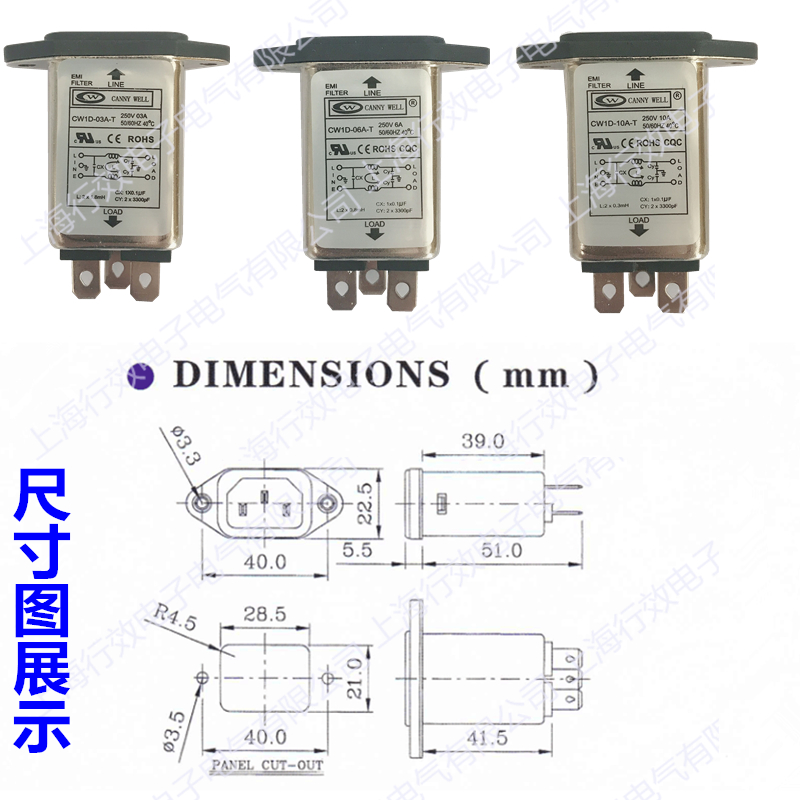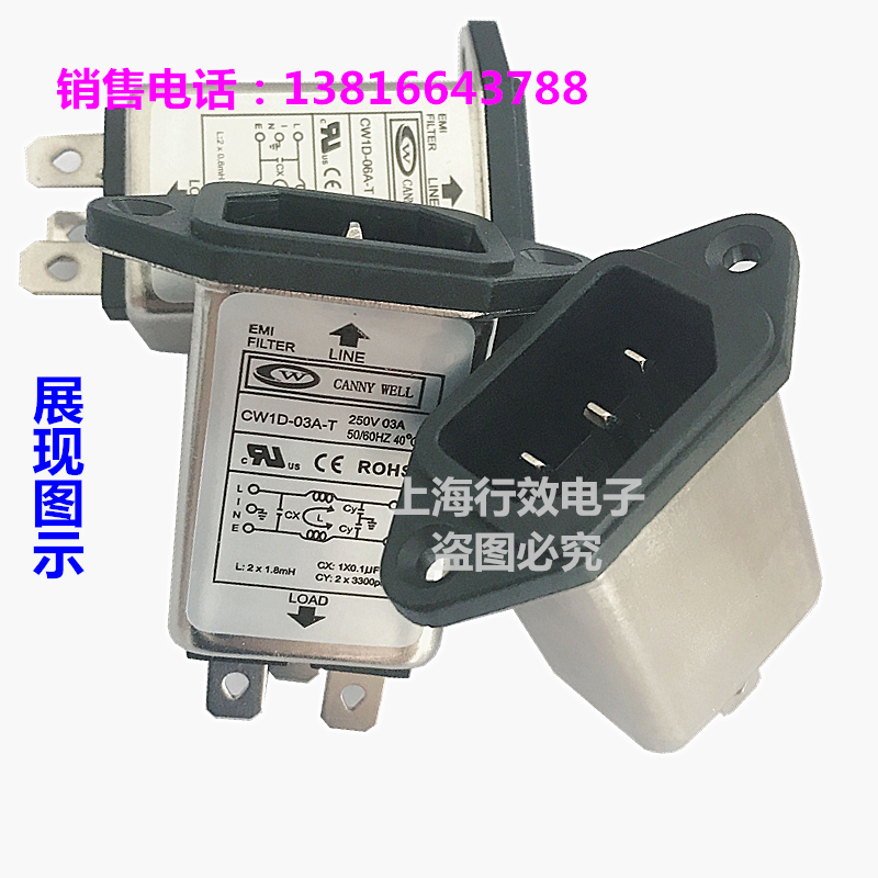 Taiwan Guangzhi 220V single-phase EMI socket type 50HZ filter CW1D 3A Power 6A 6A AC 10A purifying T