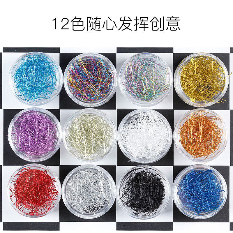 12 colour medecine gold wire suit gold and silver thread DIY nail decorations accessories with extremely fine metal thin wire strips