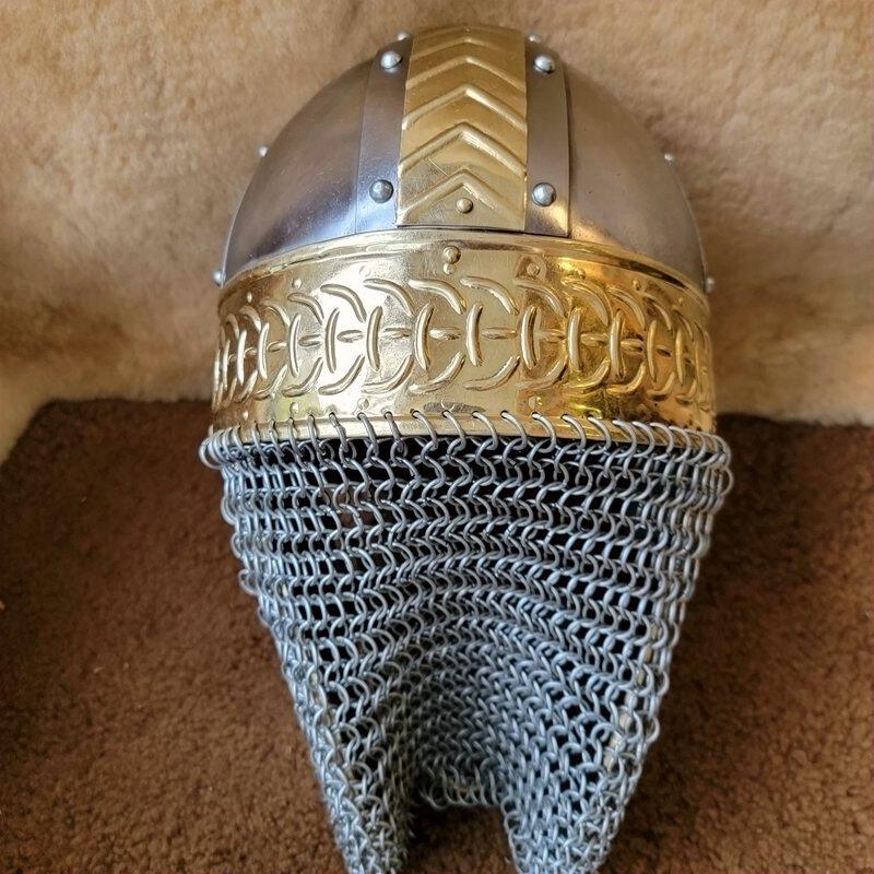 -spot-medieval early Viking safety helmet Saxon Celtic brass armor live-action wearable