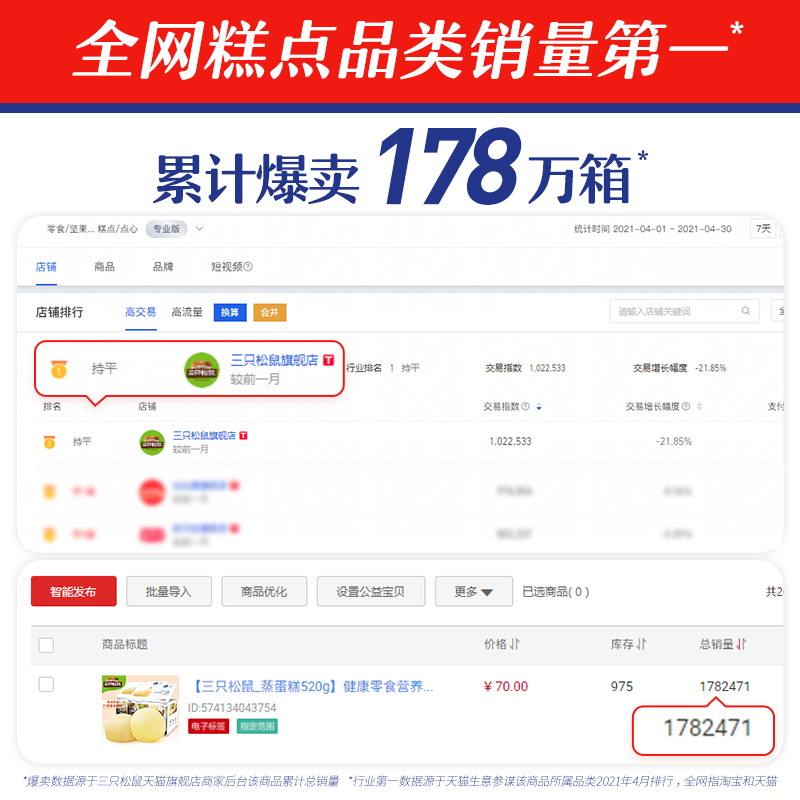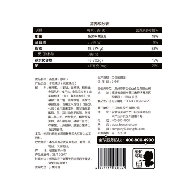 (three squirrels _ steamed cake 520gx2) healthy and nutritious breakfast bread pastry snack small cake whole box