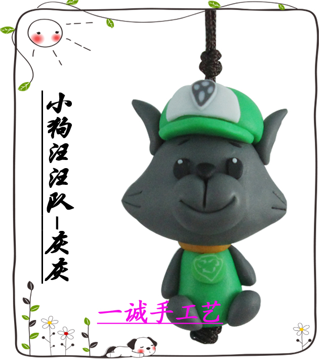 Night market supply Barking team Mao Mao manufacturers supply soft pottery mobile phone lanyard handmade pottery jewelry Cartoon pendant