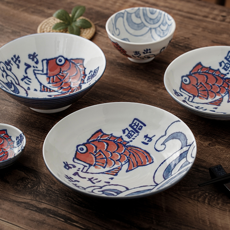 Painting letter hand-painted wind fish fun dishes 10-piece set(first order in stock)