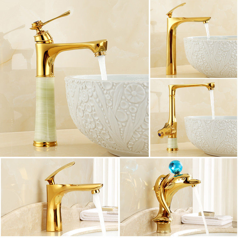 Brand new European-style bathroom tap Demei Japan Genesis Italian pasta basin hot and cold tap dolphin art black gold
