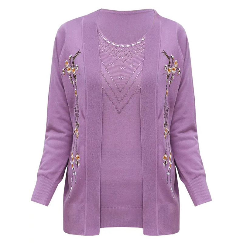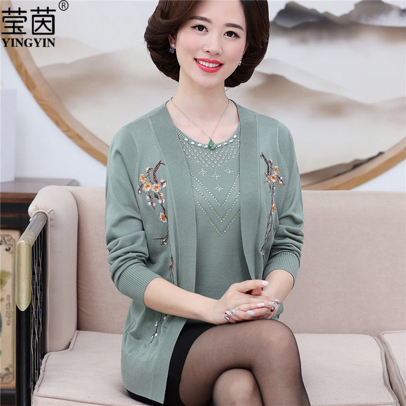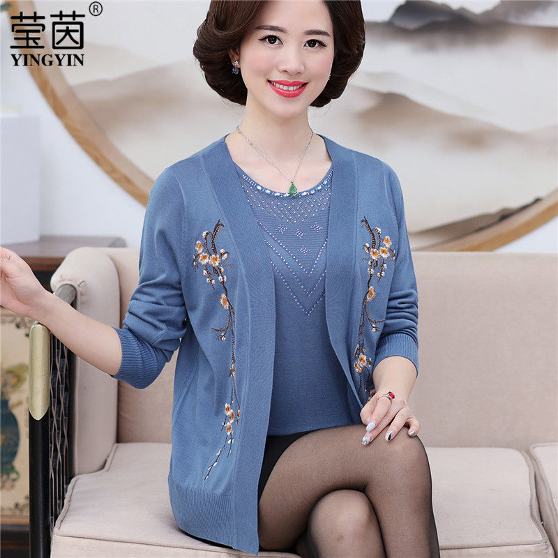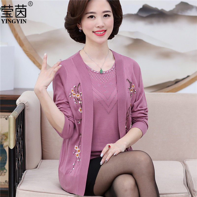 Mother's autumn and winter coat middle-aged and elderly women's two-piece suit middle-aged women's short-sleeved cardigan top knitted sweater