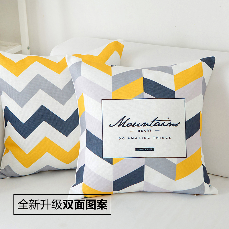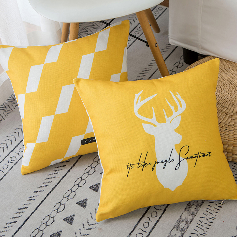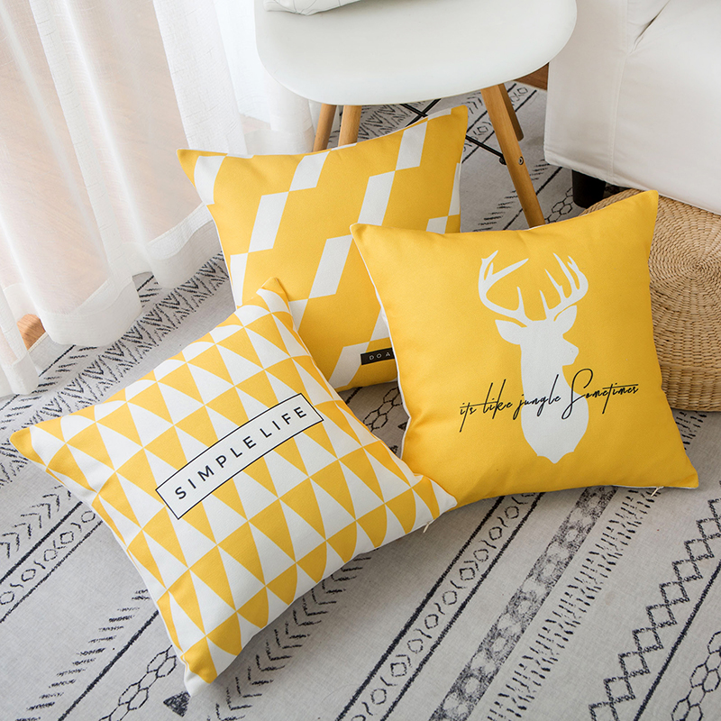 ins yellow geometric cotton numb holding pillow minimalist about Nordic design yellow sofa cushions office-like room leaning back