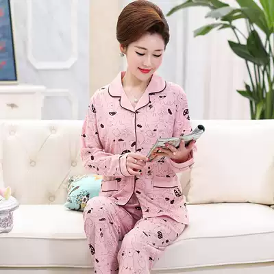 Mom pajamas middle-aged lady autumn cotton loose fat MM thin long sleeve loose middle-aged and elderly home clothing set