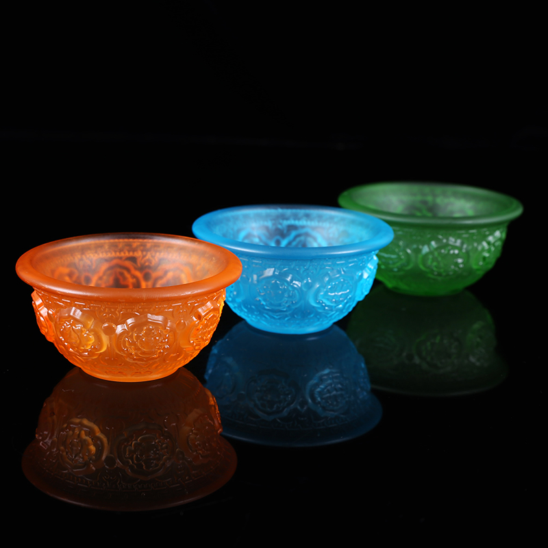 Colorful eight auspicious water supply bowl Glass for Buddha water purification bottle Water tribute cup Tibetan national supplies eight for the cup set