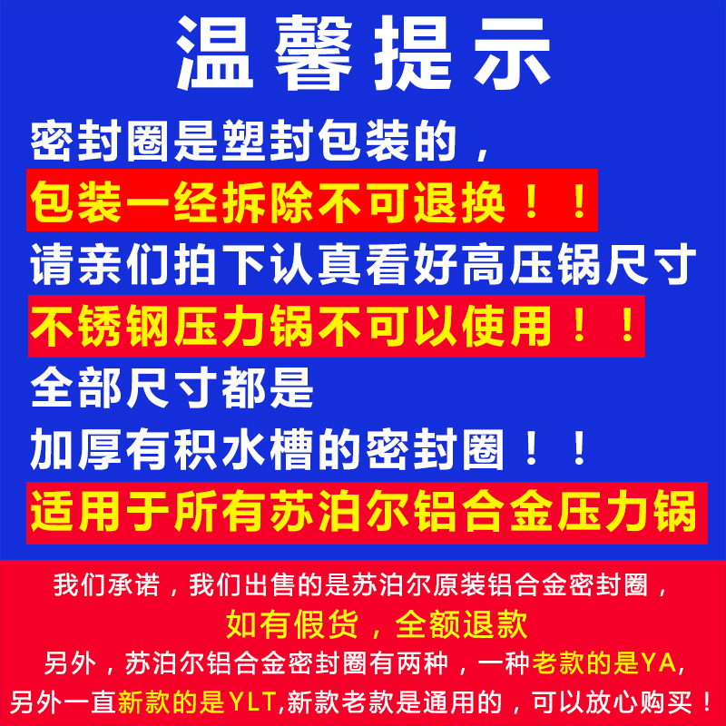 18cm (Aluminum Pressure Cooker - Universal) New - Thickened 20cm (Aluminum Pressure Cooker - Universal) New Model - Thickened 22cm (Aluminum Pressure Cooker - Universal) New Model - Thickened 24cm (Aluminum Pressure Cooker - Universal) New Model - Thickened 28cm (Aluminum Pressure Cooker - Universal) New Model - Thickened -------------- Minutes Cutter ---------------- New 20cm (Stainless Steel Pressure Cooker - Universal) New - Thickened New 22cm (Stainless Steel Pressure Cooker - Universal) New Model - Thickened New 24cm (Stainless Steel Pressure Cooker - Universal) New Model - Thickened New 26cm (Stainless Steel Pressure Cooker - Universal) New - Thickened This link sealing ring is available in aluminum alloy and stainless steel specially selected! Please contact customer service to confirm the model and size of the pot, and then place an order! If after contacting customer service, the customer service recommendation is still unusable, direct free delivery
