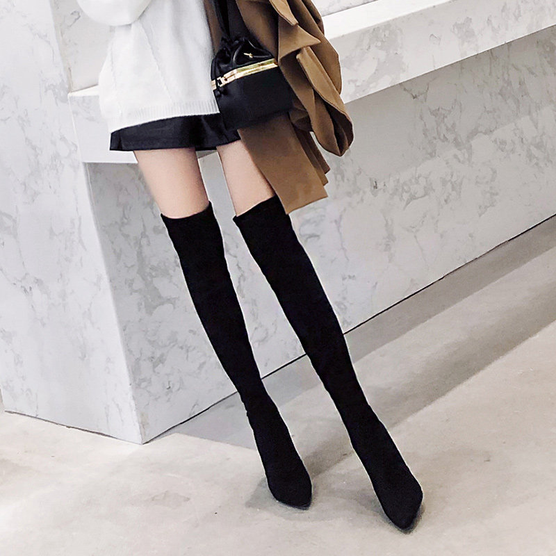 2022 new women's long boots high-heeled boots women's over-the-knee stiletto black sexy slimming scrub stovepipe elastic boots