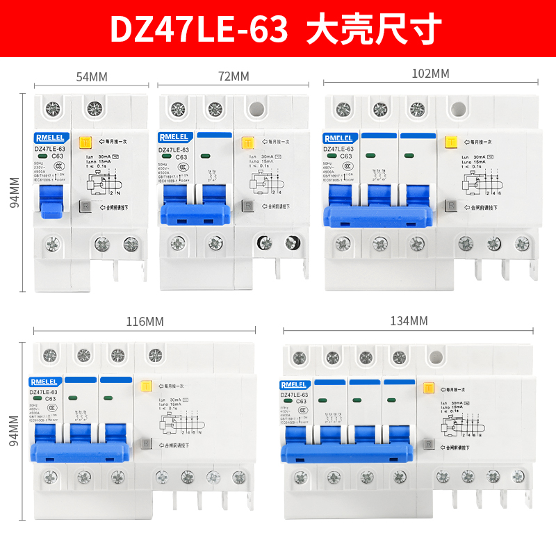 Shanghai People's DZ47LE2P3P three-phase 4-wire 63A air open with leakage protector circuit breaker household main gate