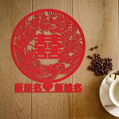 Wedding happy word custom name Dragon and Phoenix double happy word creative paste window flower decoration wedding supplies door sticker doll wedding room