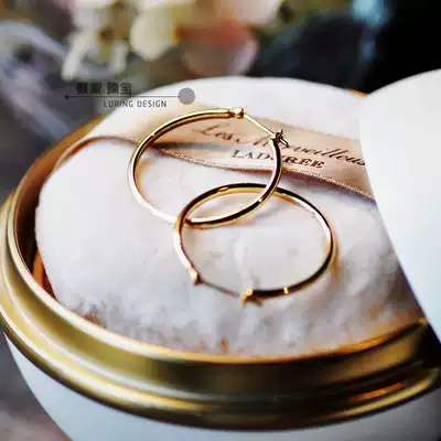 "Wei Jia" Big Ear Ring big cousin Liu Wen with plain face solid 18K yellow temperament big earrings ear needle