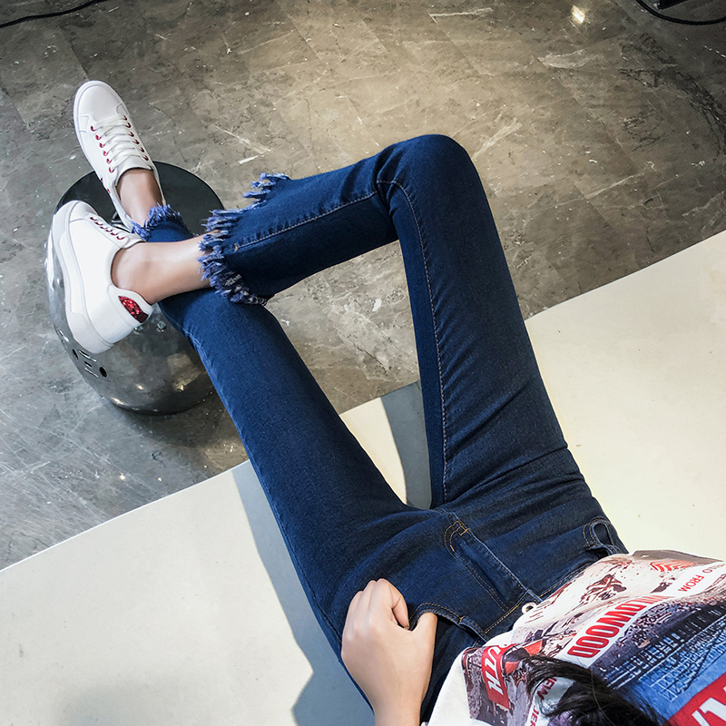 2021 spring new fringed nine-point wide-leg pants women's high-waisted chic thin hanging split micro-flared jeans