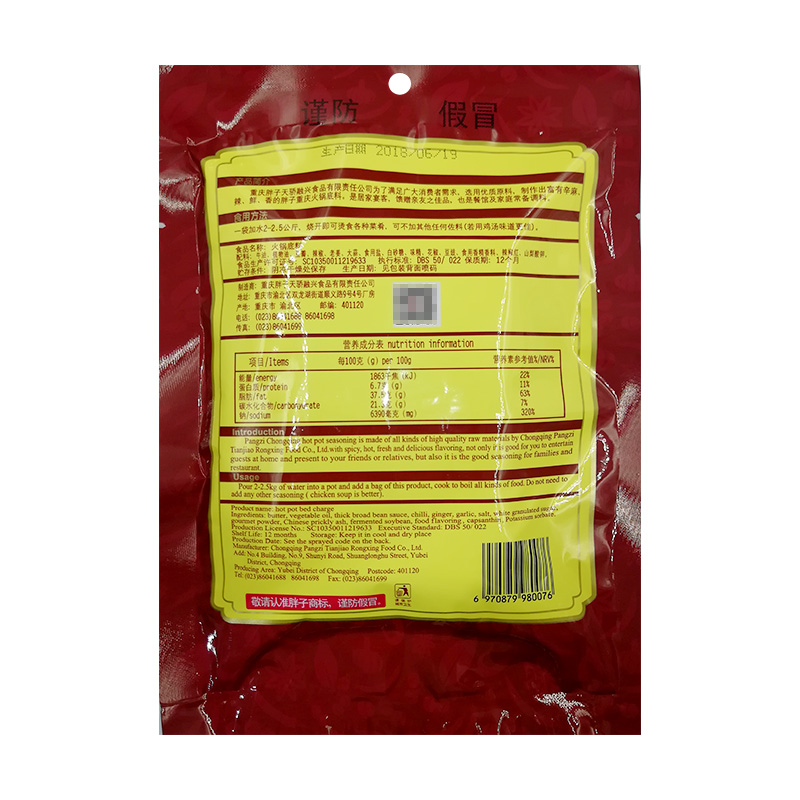 Chongqing Fatson Hotpot Soup Bottom 400g * 2 Bags Home Authentic Sichuan Bull Oil Spicy Hot Pot Material Hemp Hot seasoning