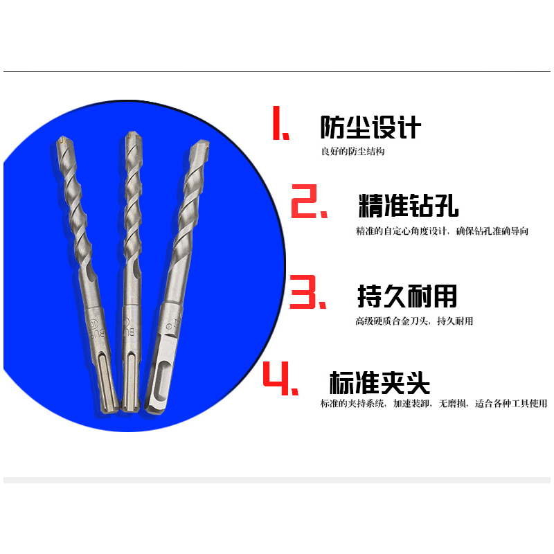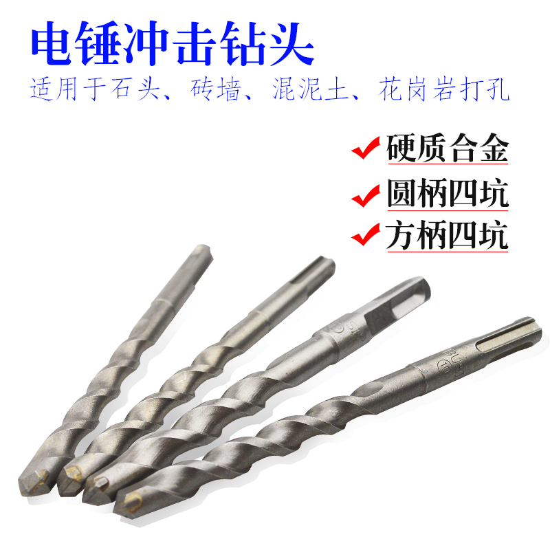 Bullion electric hammer drill bit round handle square handle 4 pit shock drill bit mixed earth lengthened wearing wall electric hammer drill percussion drill
