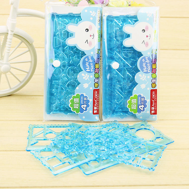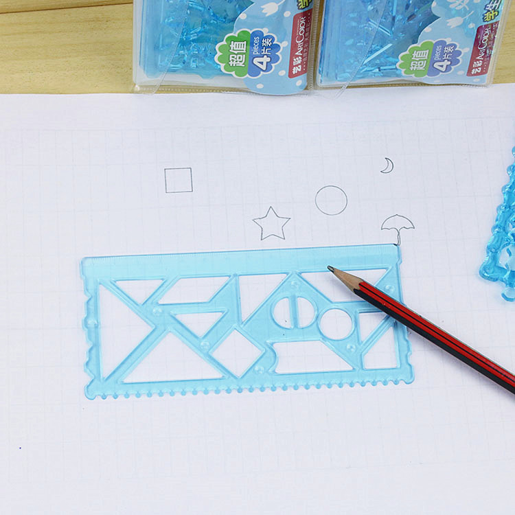 Primary School Children Multifunction Drawing Ruler Graphic Stencil Sleeve Ruler Mathematical Geometry Body Wave Wire Ruler set of 4