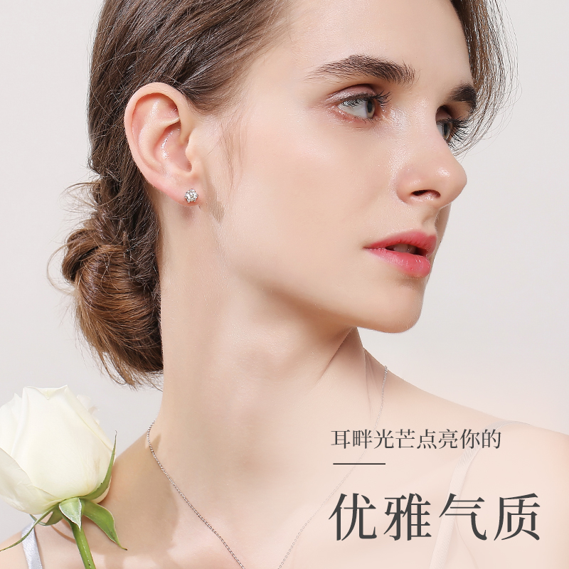 CRD KLeuti Six-claw diamond ear nail pair of real diamond white 18K gold single drill ear bead delivery