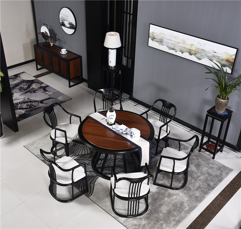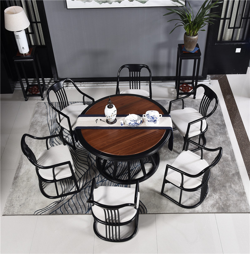 New Chinese round table dining table and chair combination model room Zen solid wood dining table villa dining room Chinese furniture dining table and chairs - Taobao