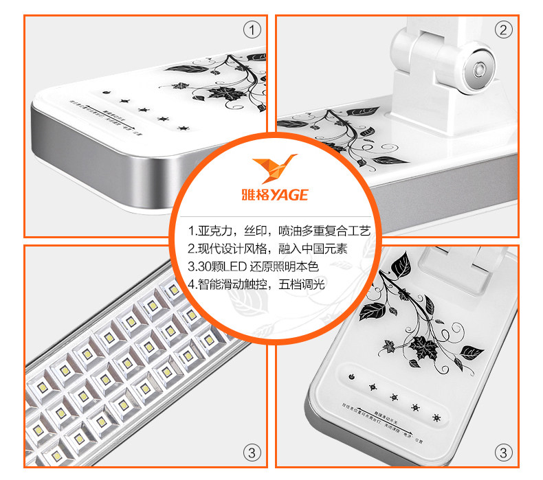 Yage YG-3986 rechargeable eye protection touch desk lamp Folding dormitory desk College students comfortable reading at the head of the bed