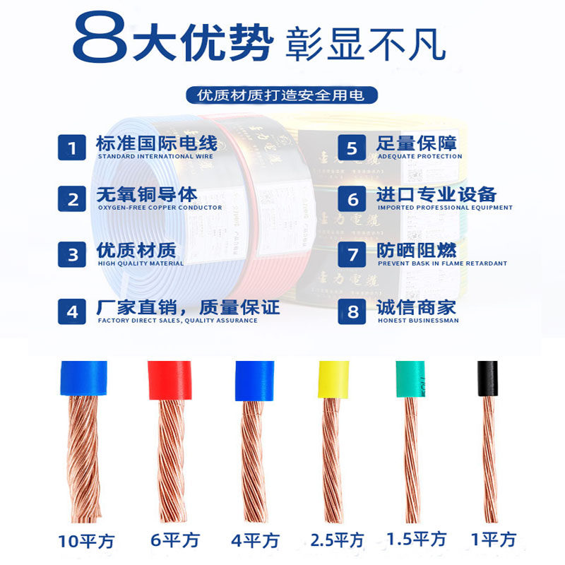 Soft wire BVR1 5 2 5 4 6 square GB multi-strand multi-core pure copper core wire Home improvement household wire 50 meters