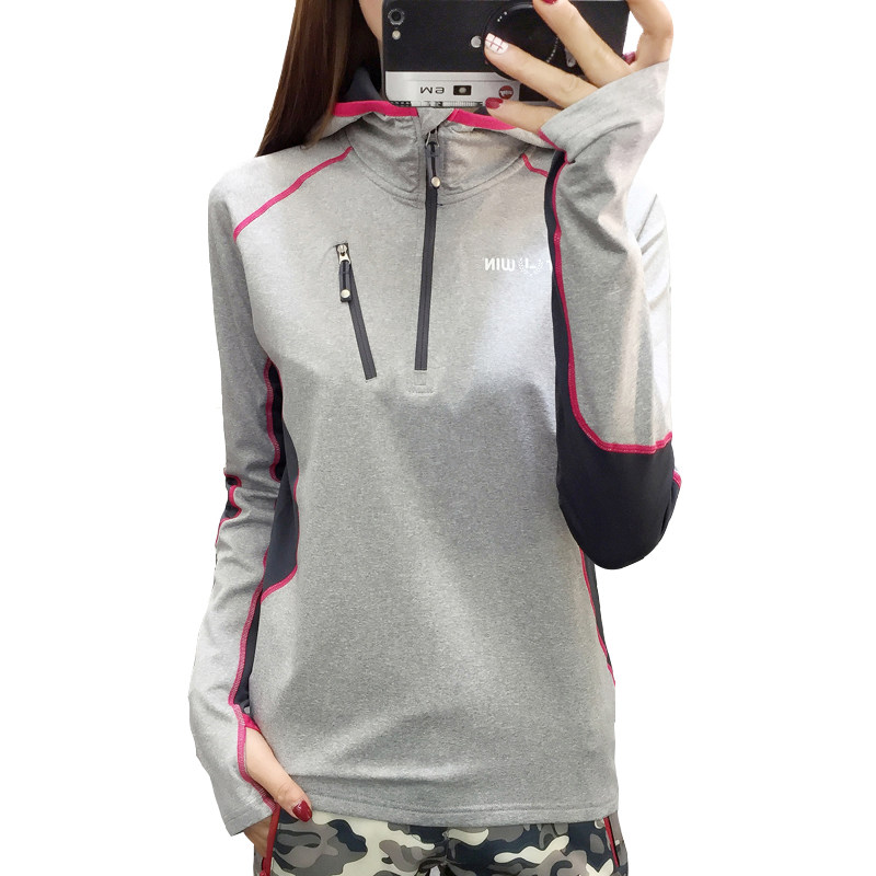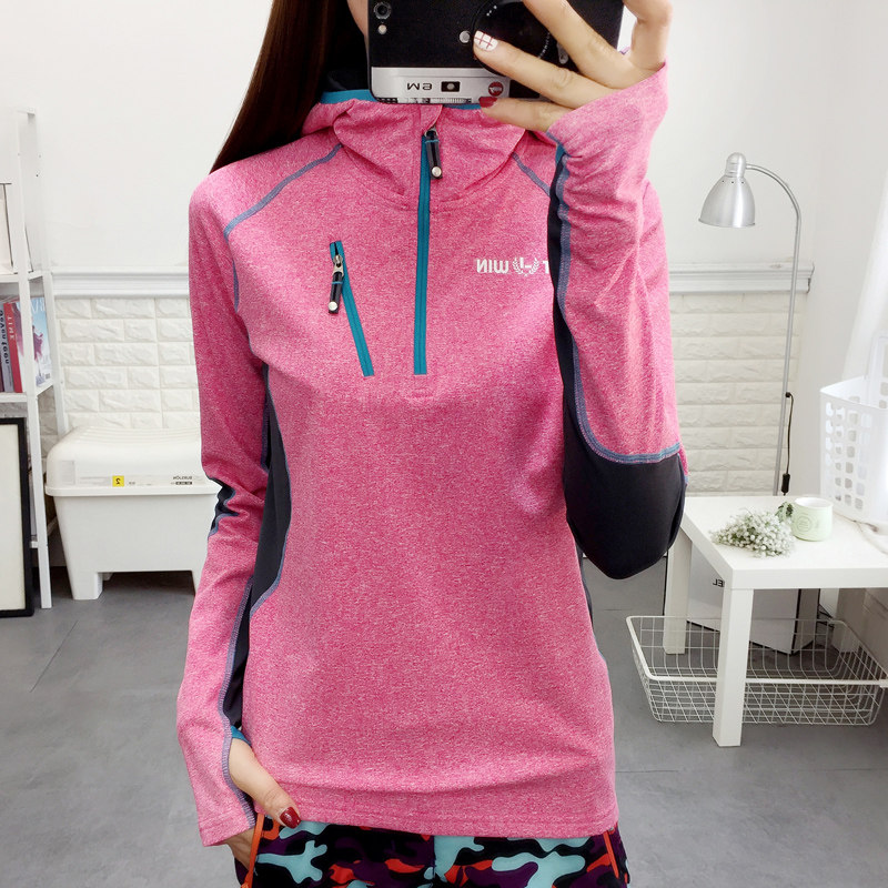 Spring and Autumn Quick Dry Clothes Women's Trendy Outdoor Mountaineering Riding Fitness Hooded Pullover Thin Velvet Running Pants Thick Cotton T New