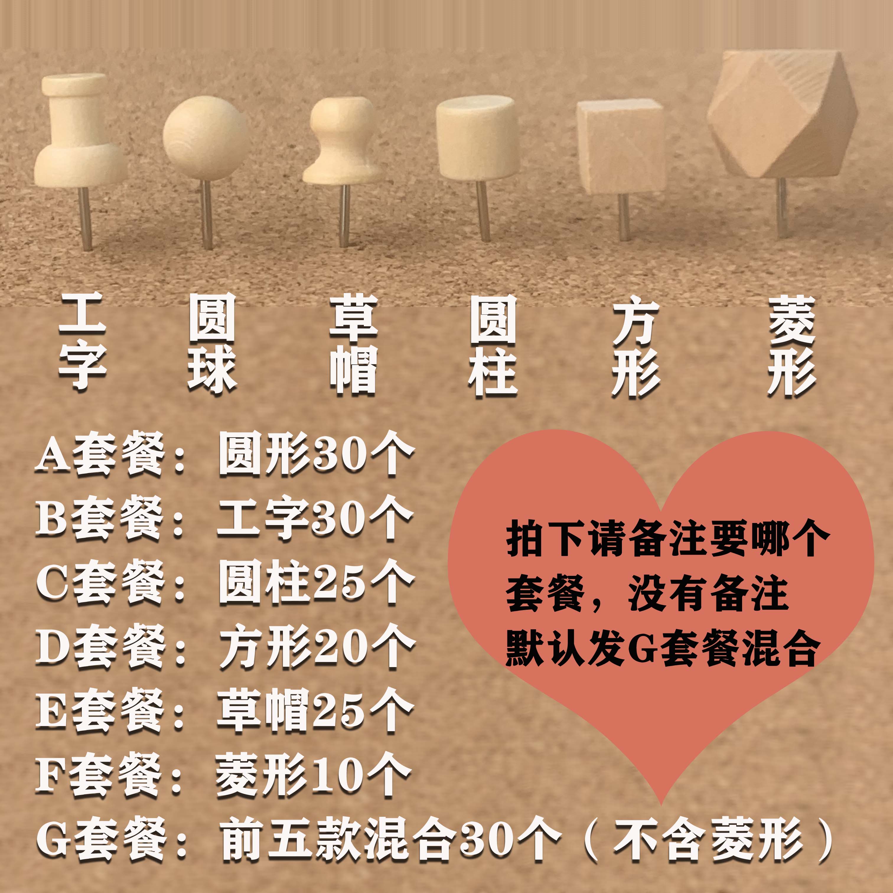Boxed Log Pushpin Creative Solid Wood Cute Cork Photo Wall I-Beam Nail Kindergarten Art Head Press Nail