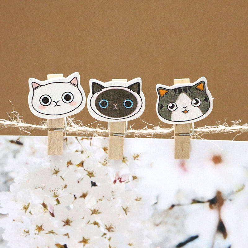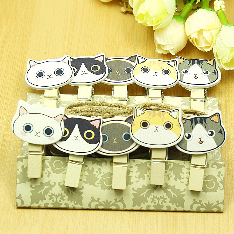 Small cat wood clip (10 mounted with hemp rope)