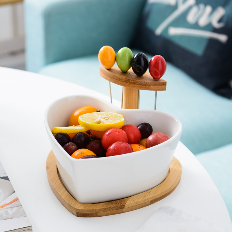 Fruit plate living room creative household ceramic salad heart-shaped bowl with fruit fork microwave oven baking baked rice bowl baking tray