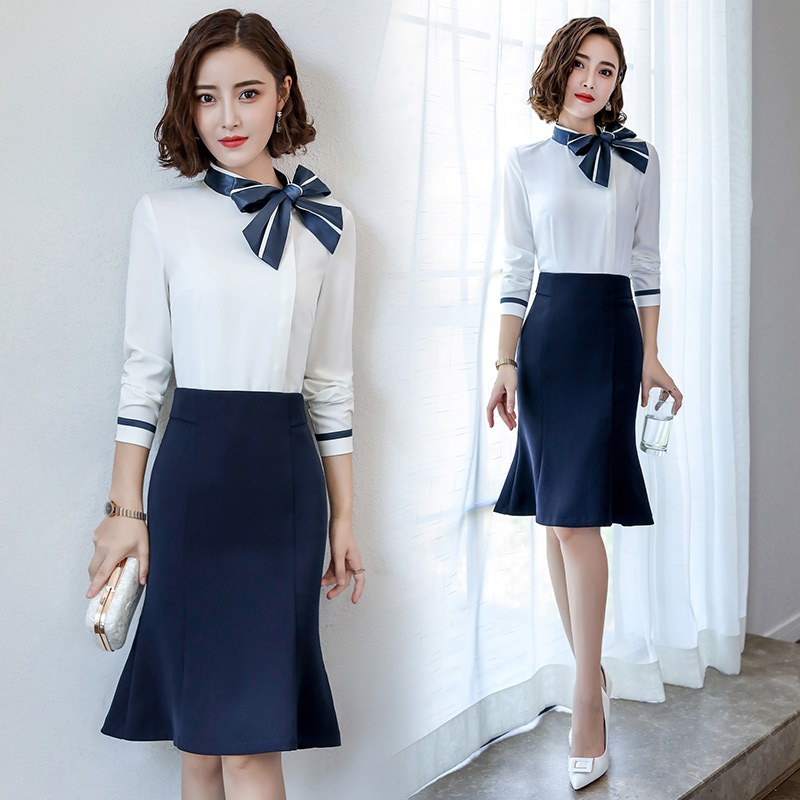 Career Suit 2022 Spring New Blouse Dress Temperament goddess Fan is wearing a flight attendant's uniform interview workwear