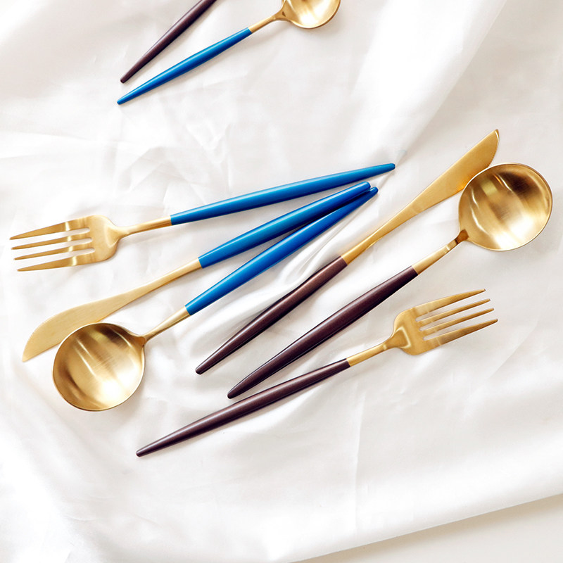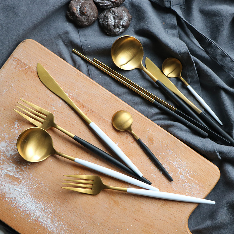Black gold chopsticks, black gold coffee spoon, black gold main meal spoon, black gold main meal fork, black gold main meal knife, black silver chopsticks, black silver coffee spoon, black silver main meal spoon, black silver main meal fork, black silver main meal knife, coffee gold coffee spoon, gold main meal spoon, coffee gold