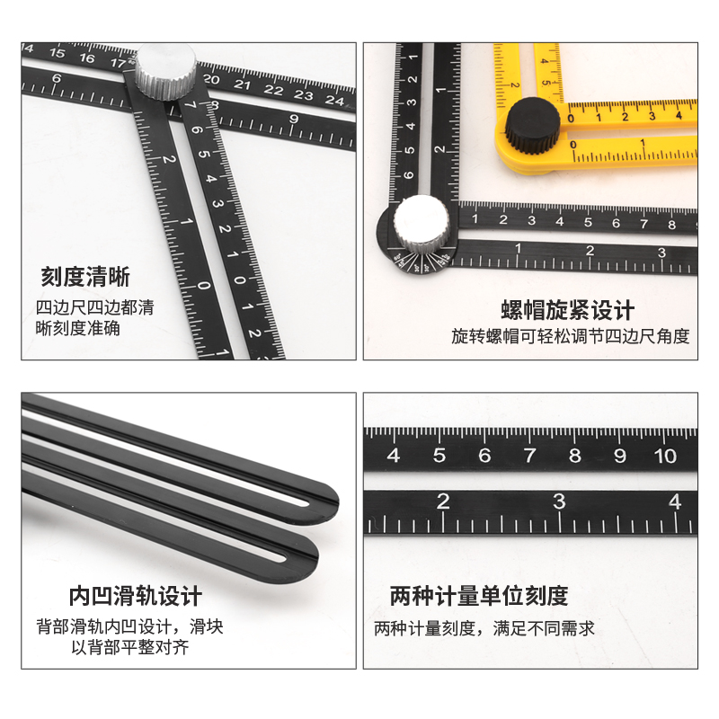 Multifunctional four-sided folding ruler Four-angle ruler Angle ruler Tile ruler Positioning folding ruler Movable four-fold ruler Aluminum alloy