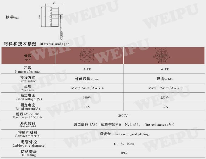 WEIPU WEIPU WAPU WA22G1 WA22 Type G1 Cover Waterproof IP67