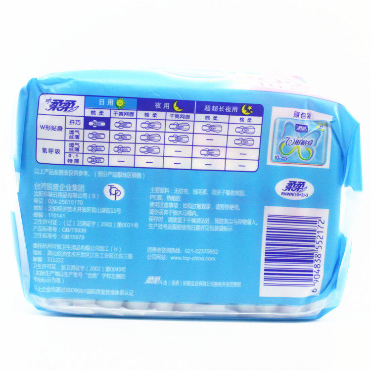 10 packs of soft W-shaped sanitary napkins Daily cotton soft and slim 240mm