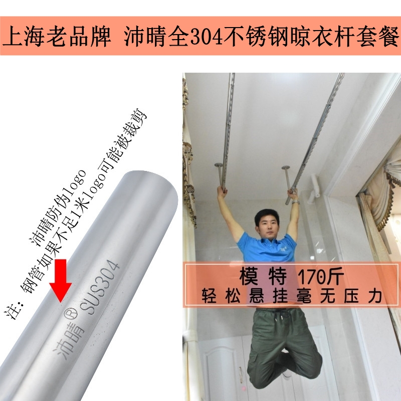 Peiqing 304 stainless steel clothes rack Balcony fixed clothes rack single rod cold hanging clothes rack Ceiling mounted clothes rack