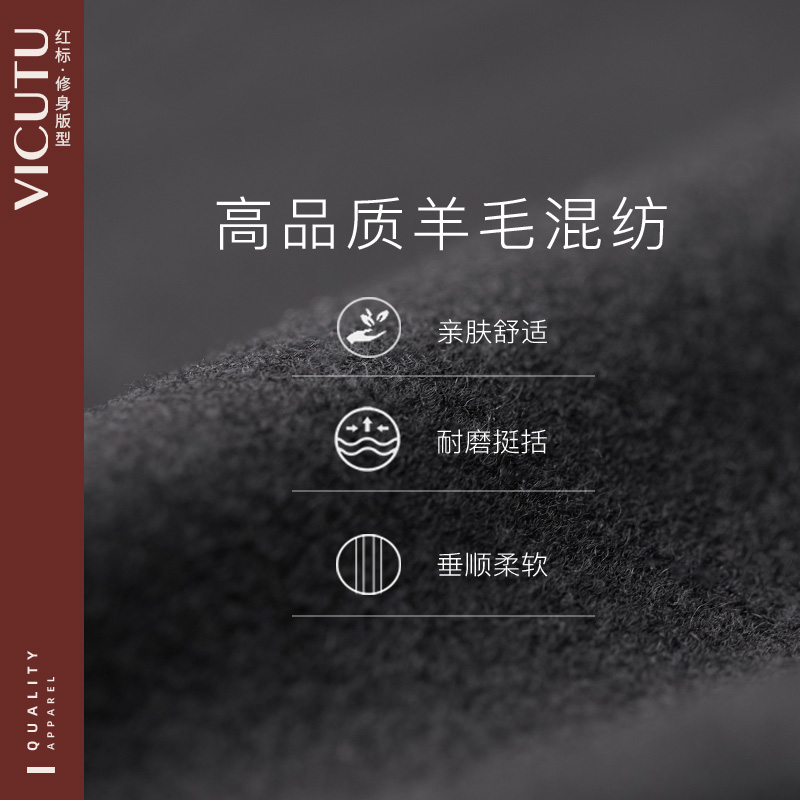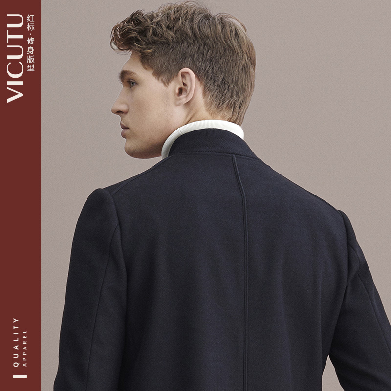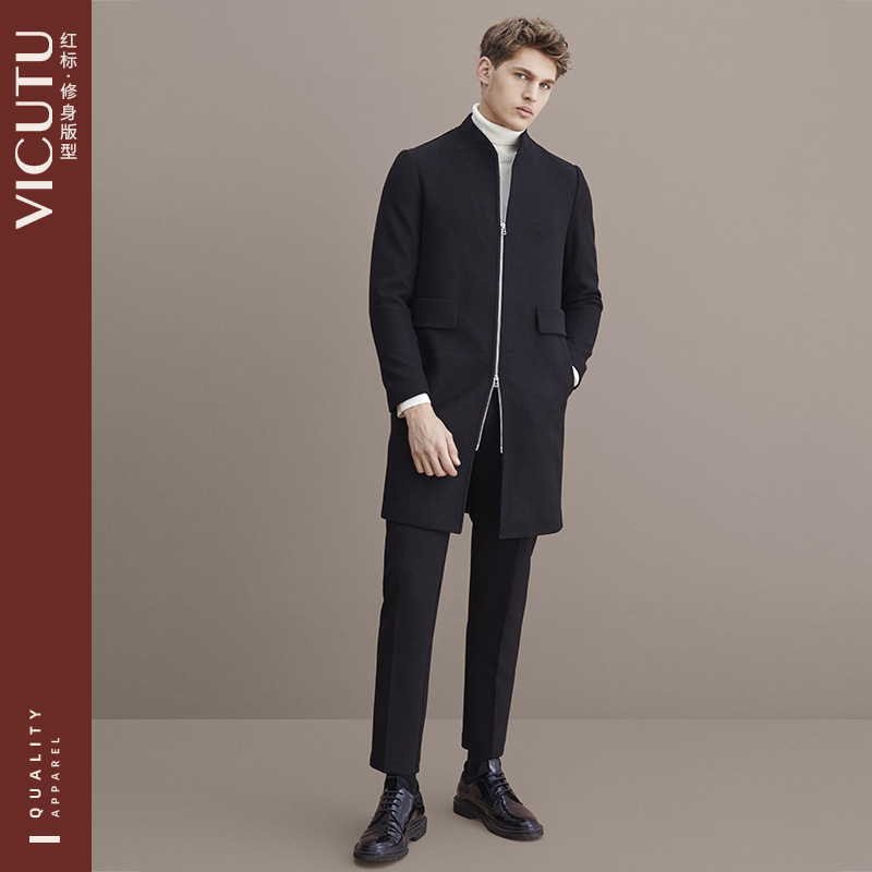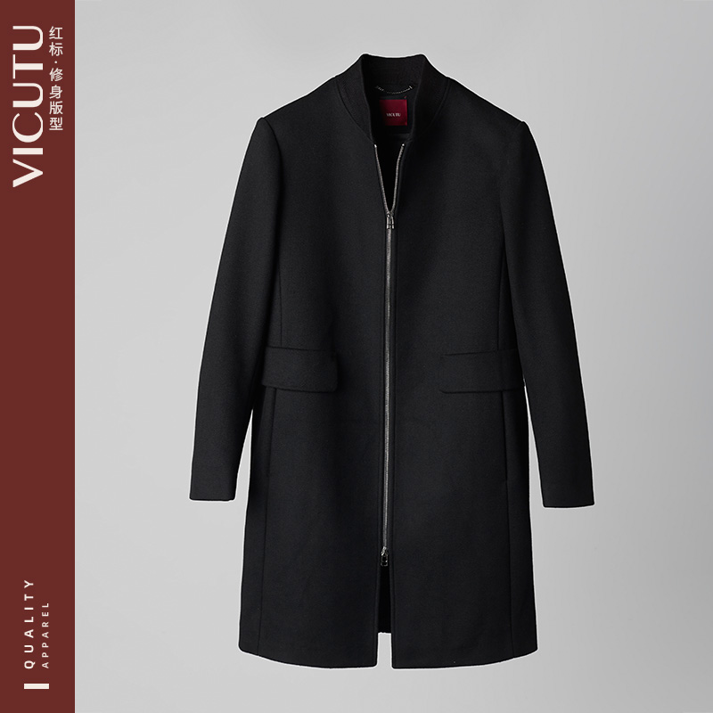 VICUTU Vikado men's wool coat business slim long baseball collar fashion woolen coat Hui