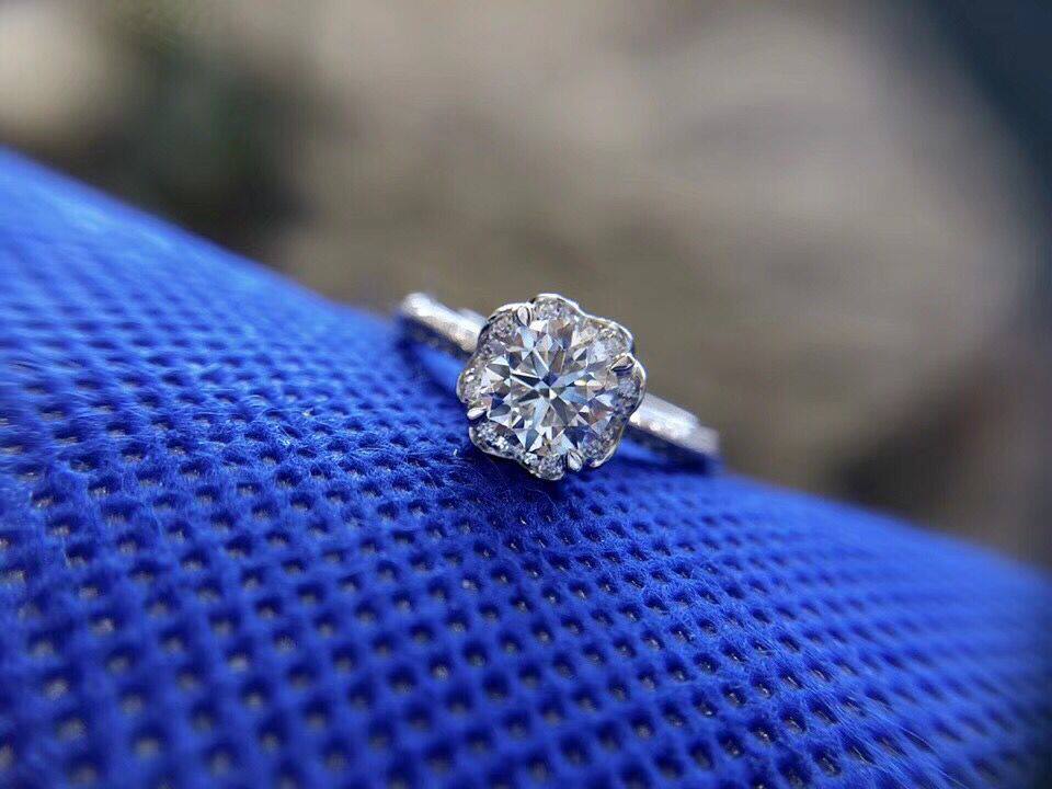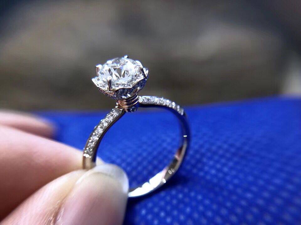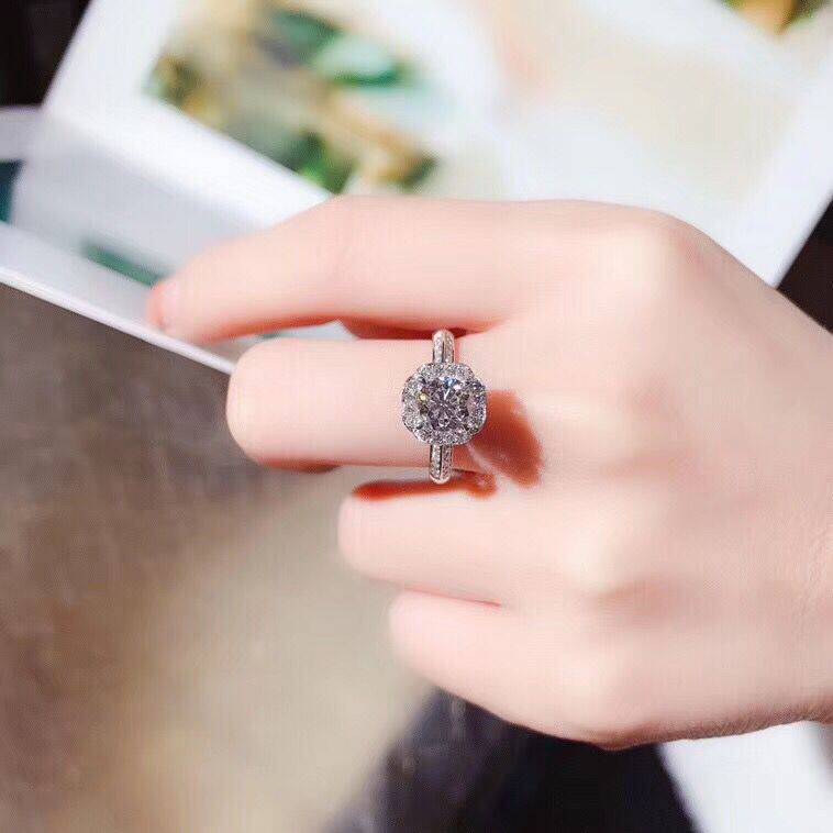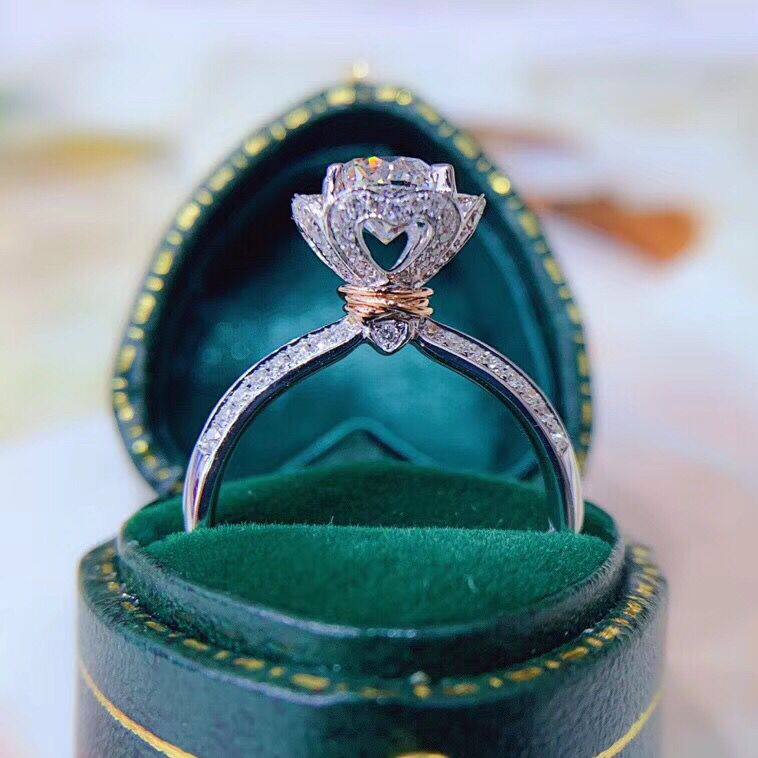 White 18K gold 1 carat effect drill ring 30 points 50 courting to set wedding diamond ring female group inlaid and drilled