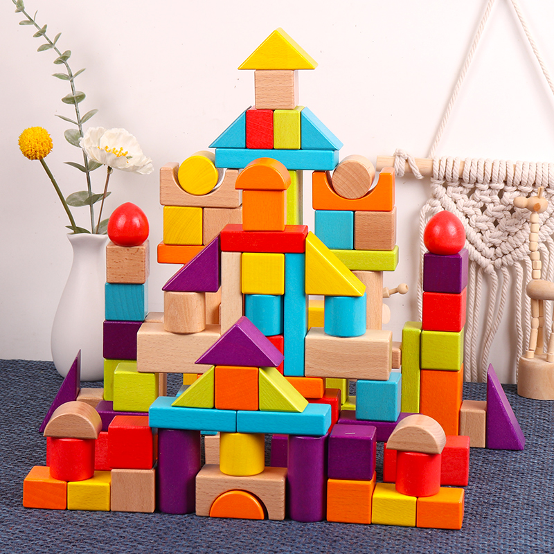 (beech-wood-mounted) 30pcs colorful building blocks (clock drum clothing) 75pcs colorful building blocks (beech wooden debatable clothes) 100pcs dream building blocks imported beech wood colored building blocks 1