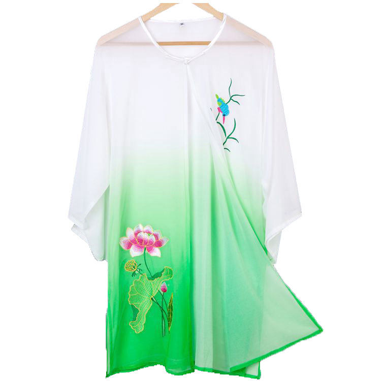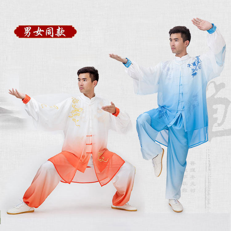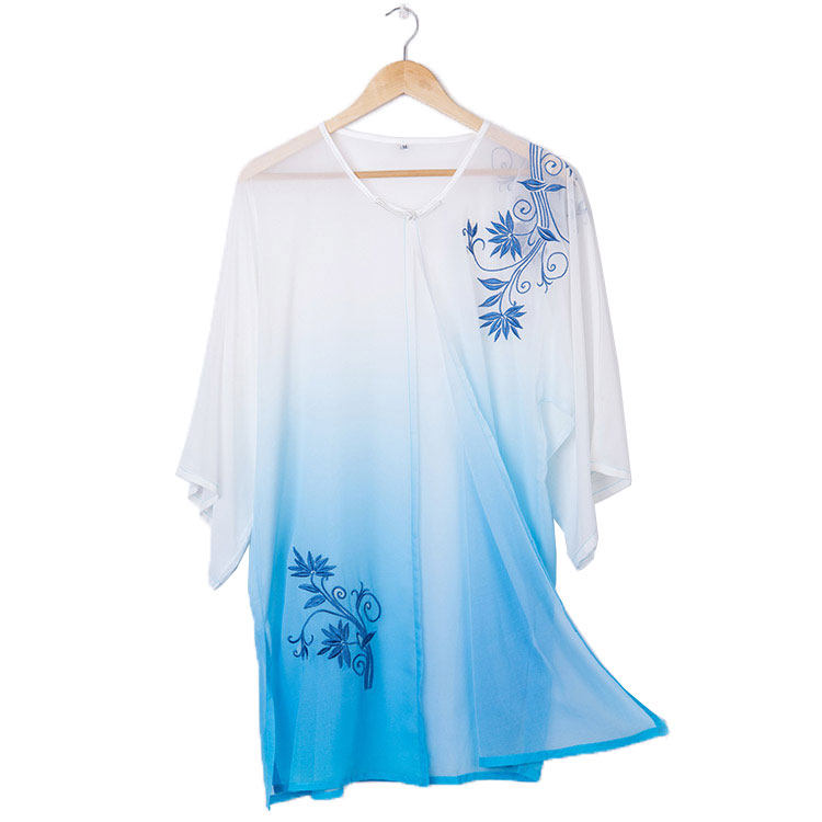 Xiaoheshan Taiji clothing women's summer drape elegant blue and white porcelain embroidery embroidery men's Taijiquan clothing competition performance