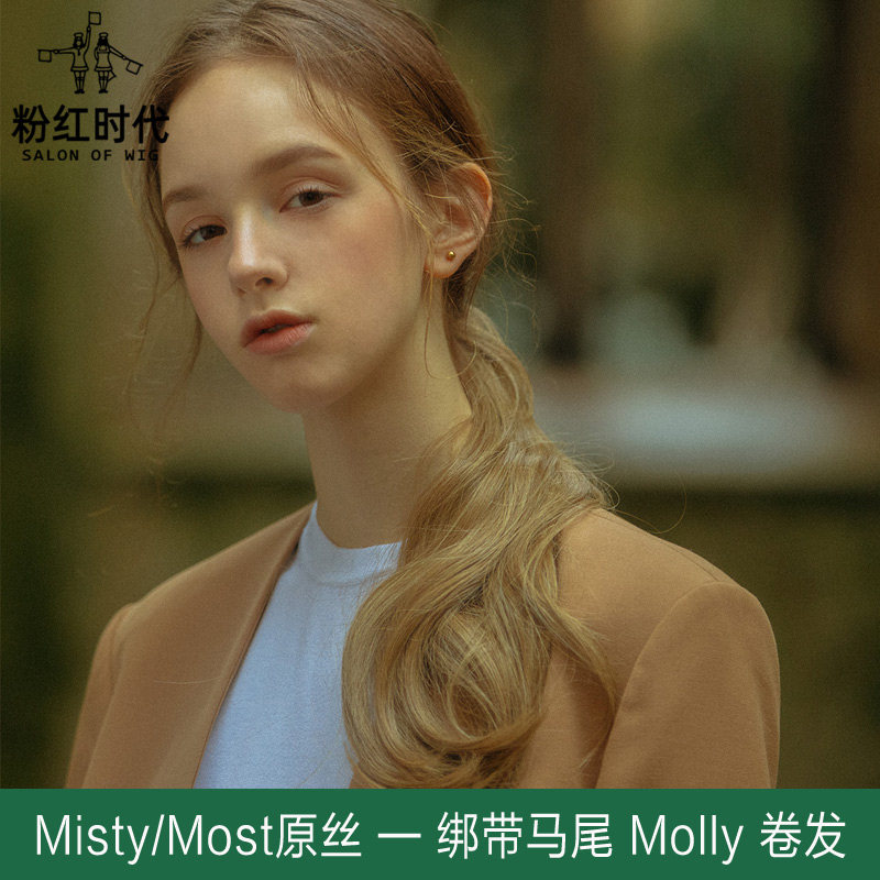 Pink era wig female molly ponytail long curly natural strap type fake ponytail micro volume realistic long version